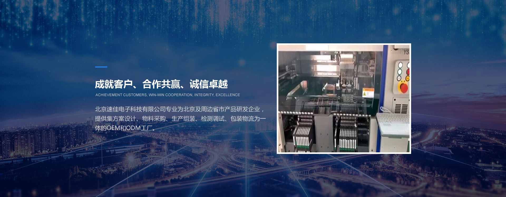 北京速佳電子科技有限公司專業(yè)為北京及周邊省市產(chǎn)品研發(fā)企業(yè),提供集方案設(shè)計(jì)、物料采購、生產(chǎn)組裝、檢測調(diào)試、包裝物流為一體的OEM和ODM工廠。